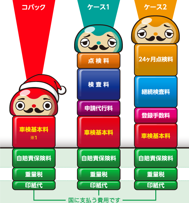 コバック車検に必要な費用は、「車検基本料」と「国に支払う費用」だけです。